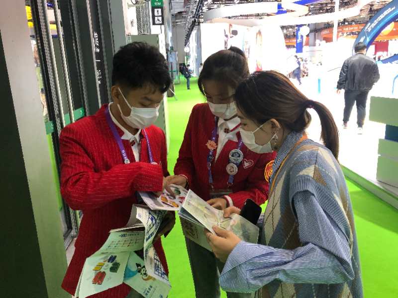 “小葉子”一天的工作非常忙碌,不僅要引導(dǎo)代表團(tuán)順利參展,還有能熟練地向每一位參展的觀眾介紹展區(qū)分布、展位特色和熱點產(chǎn)品。